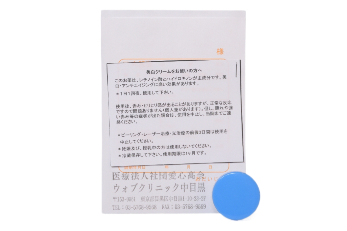 | 美白クリーム (ハイドロキノンとトレチノイン酸を配合) | 外用薬 | 5g (トレチノイン酸0.05%) | 5,500円 |
