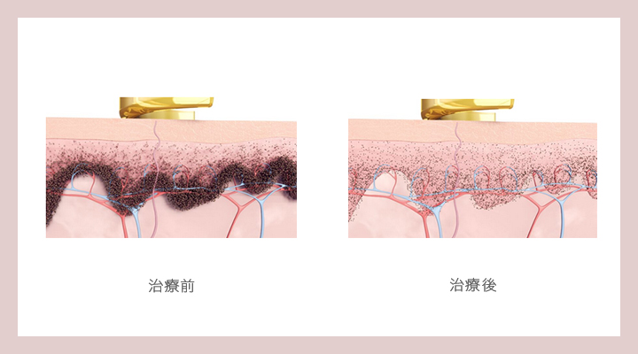 従来のナノ秒レーザーより1000倍短い時間で照射できるため、メラニンをより細かく砕き、熱ダメージを最小限に抑えながら治療が可能になります。