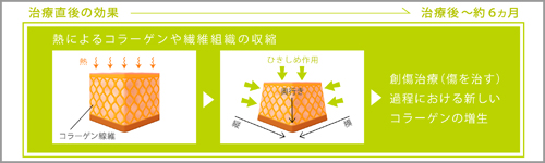 高周波(RF)の熱により、コラーゲンが一度収縮し、