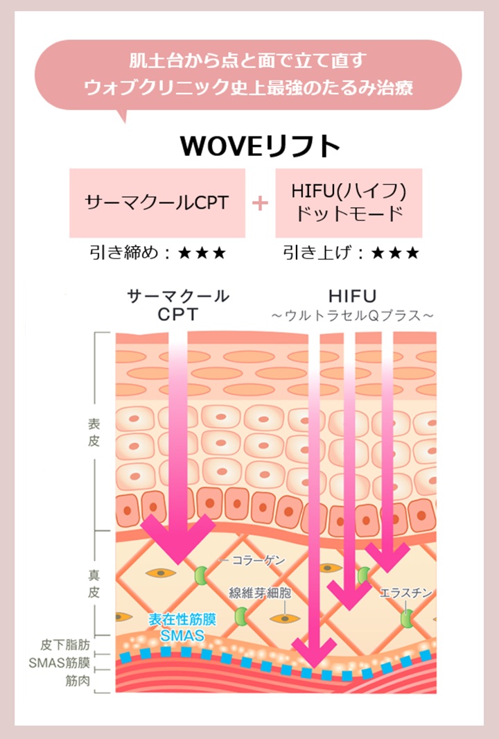 サーマクールとHIFUが異なる層にアプローチし、相乗的に引き上げる仕組み