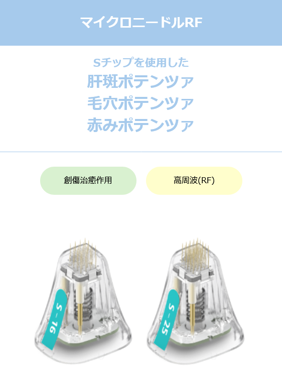 髪の毛よりも細い針を肌に刺して、針先からRF(高周波)を照射し、表皮から真皮上層に浅く熱を加えるチップ。