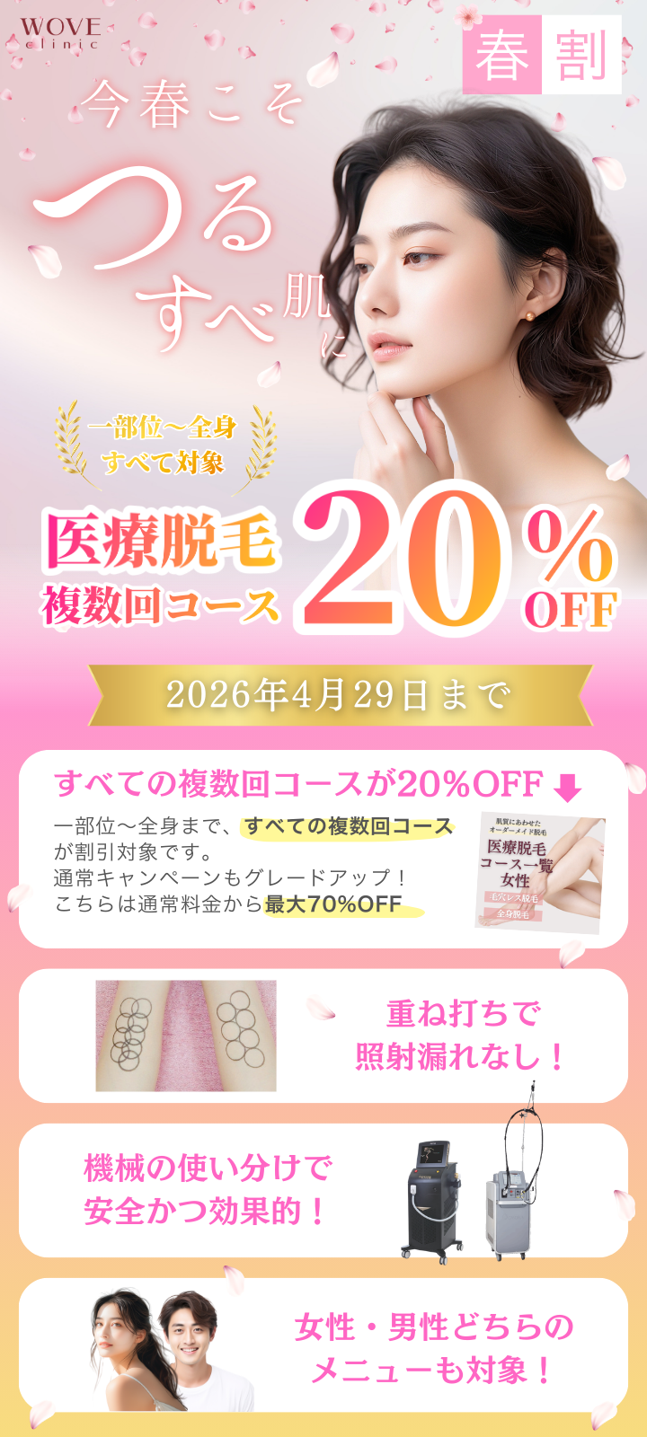 ・上記以外の複数回脱毛コースも20%OFFの対象となります。